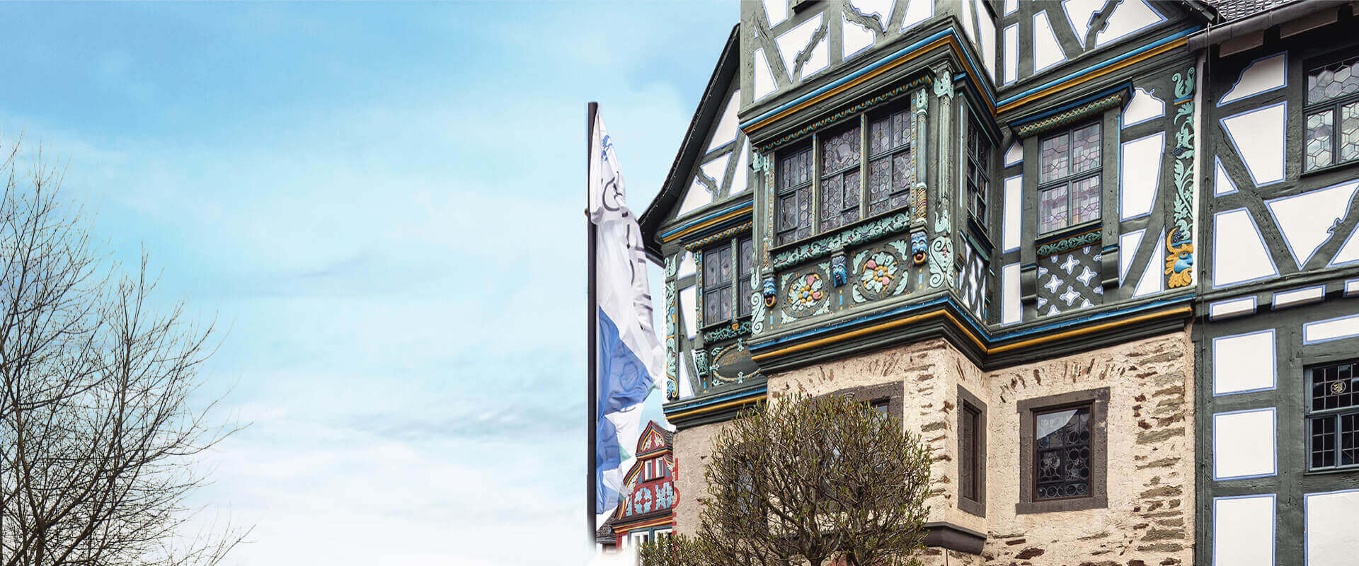 Inmitten der grünen Taunushügel, nahe der Großstädte Frankfurt und Wiesbaden, liegt die alte Nassauische Residenz Idstein. Hier, am Ende der Obergasse, über den Dächern der liebevoll restaurierten autofreien Altstadt, steht seit jetzt mehr als 400 Jahren unser Kulturdenkmal, die letzte so erhaltene Renaissance- Hofreite Hessens: